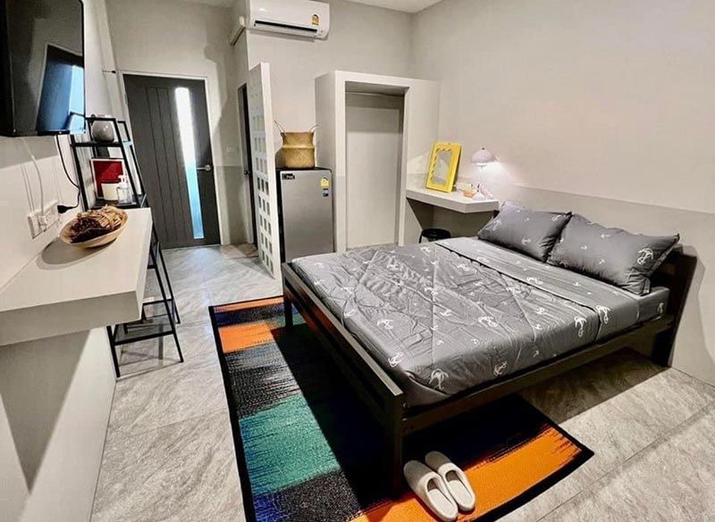 ภายในห้องพัก มีเฟอร์นิเจอร์ และเครื่องใช้ไฟฟ้าใหม่ทุกตัว ครบครัน แอร์เย็นฉ่ำ / Smart TV 43นิ้ว / ตู้เย็น / เครื่องทำน้ำอุ่น / อินเตอร์เน็ตความเร็วสูงฟรี / กระเป๋าใบเดียว เข้าอยู่ได้เลย