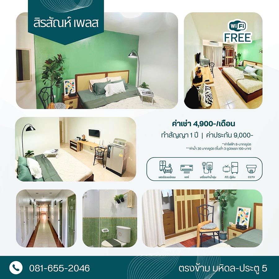 หอพักใกล้ ม. มหิดล ศาลายา พุทธมณฑล นครปฐม สิรสัณห์ เพลส เฟอร์นิเจอร์ครบ มาแต่ตัวเข้าอยู่ได้เลย ฟรี internet