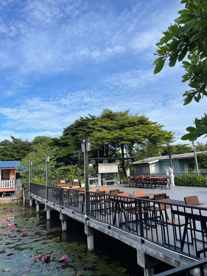 -พื้นที่ริมน้ำ ข้างหลังมีสระบัว