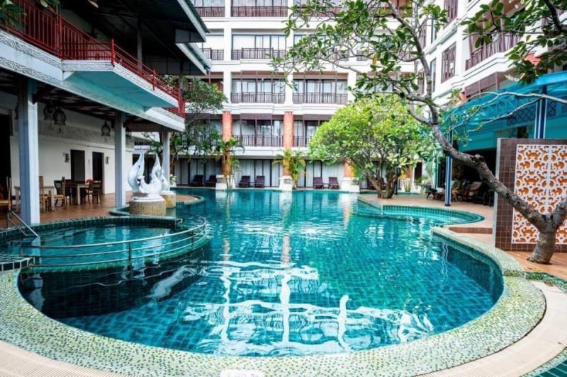 ขายโรงแรมตกแต่งสไตล์ไทยๆจำนวน126ห้องเนื้อที่4ไร่12.7 บางละมุง ใกล้ตลาดลานโพธิ์นาเกลือสระว่ายน้ำ2สระ มีห้องประชุมสัมนา ไม่บวกเพิ่ม ราคาขาย550ล้านบาทค่าหักโอนคนละครึ่ง ติดต่อ 📞0863674148