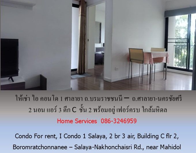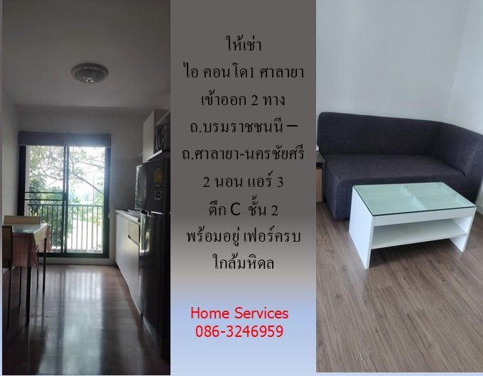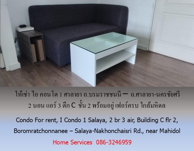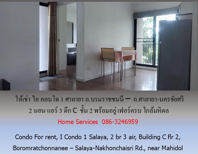 ให้เช่า ไอ คอนโด1 ศาลายา ถ.บรมราชชนนี – ถ.ศาลายา-นครชัยศรี 2 นอน แอร์ 3 ตึก C ชั้น 2 พร้อมอยู่ เฟอร์ครบ ใกล้มหิดล