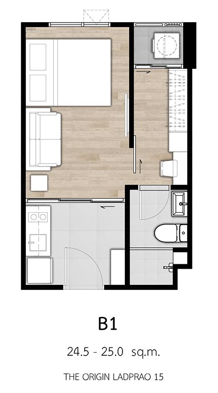 - 25 ตร.ม. 1 ห้องนอน 1 ห้องน้ำ