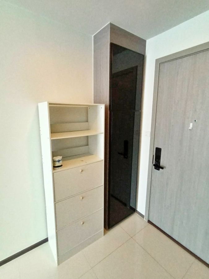 เฟอร์นิเจอร์: เตียงนอน+ที่นอน, Walk-in closet, โซฟา (ในรูปยังไม่มี), ชั้นวางทีวี, เคาท์เตอร์ครัว, ชั้นเก็บของ