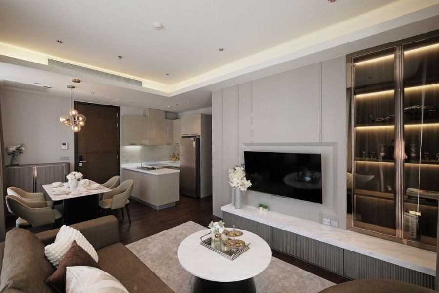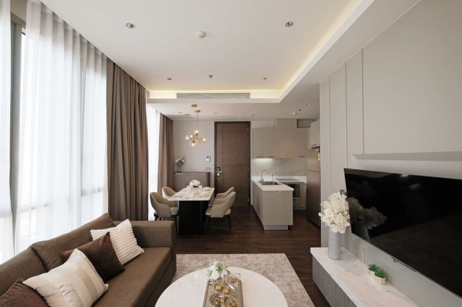- 1 ห้องนั่งเล่น + ครัวแยกเป็นสัดส่วน