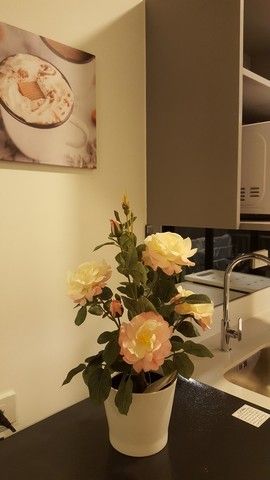 ครัวแยก เตาไฟฟ้า เครื่องดูดควัน ไมโครเวฟ แอร์ 2 ตัว เครื่องซักผ้าฝาหน้า น้ำอุ่น ตู้เย็น โซฟาเบด โต๊ะทานข้าว สมาร์ททีวี, Digital door lock,ระบบสั่งเปิดปิดแอร์และไฟผ่านโทรศัพท์มือถือ
