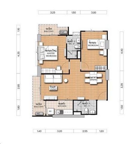 ห้องใหญ่สะใจ: 76 ตร.ม. 2 ห้องนอน 2 ห้องน้ำ อยู่กัน 2-3 คนได้สบายๆ ไม่อึดอัด
