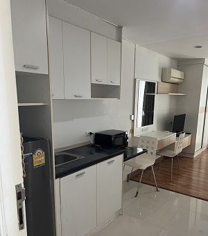 19 ตารางเมตร 1ห้องนอน 1ห้องน้ำ ชั้น5, เลขที่ห้อง 1779/43 เฟอร์นิเจอร์และเครื่องใช้ไฟฟ้าครบ: เตียงนอน โซฟา ตู้เสื้อผ้าไมโครเวฟ ตู้เย็น แอร์