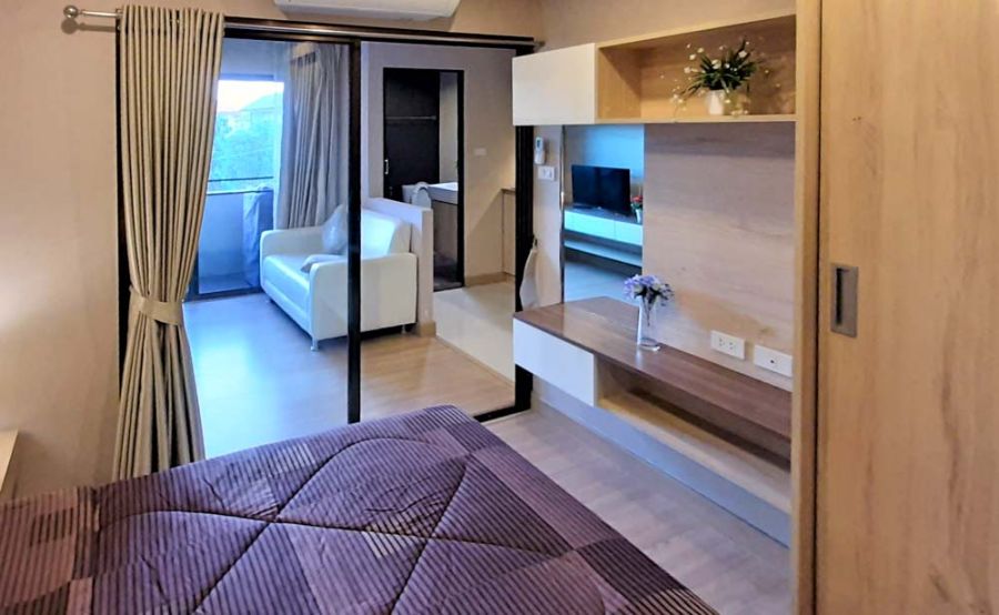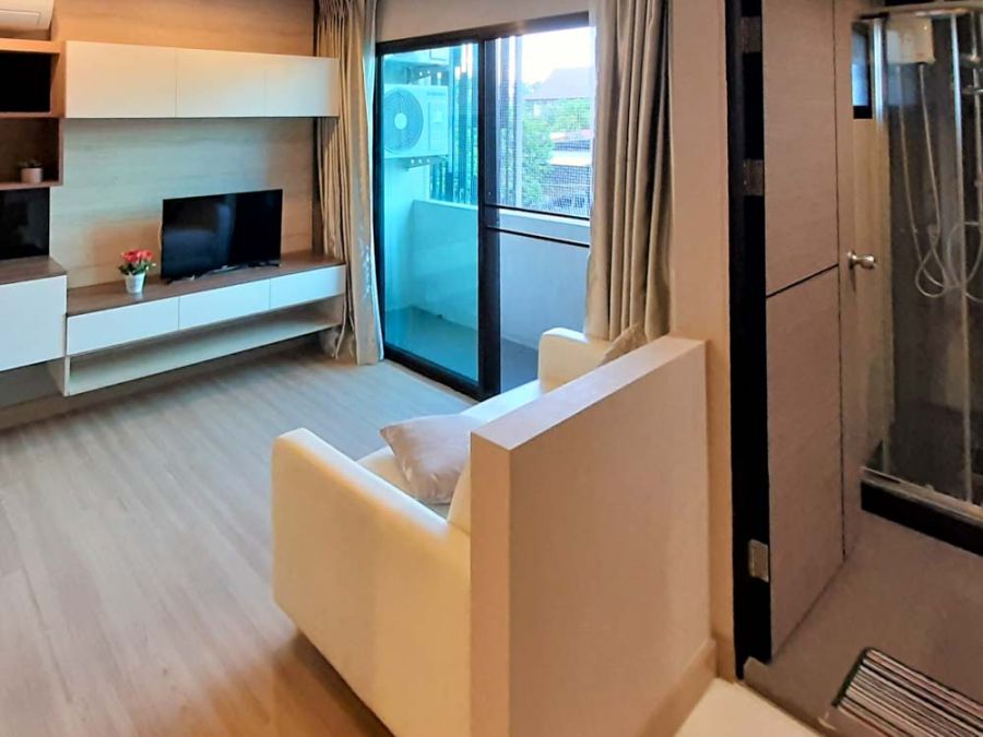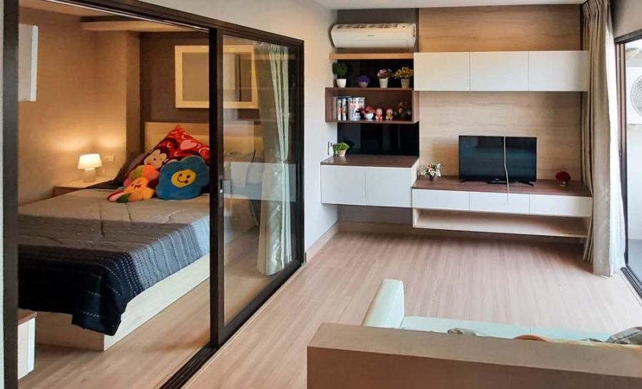 1 ห้องนอน 1 ห้องน้ำ 1 ห้องนั่งเล่น 1 ห้องครัว 1 ที่จอดรถ