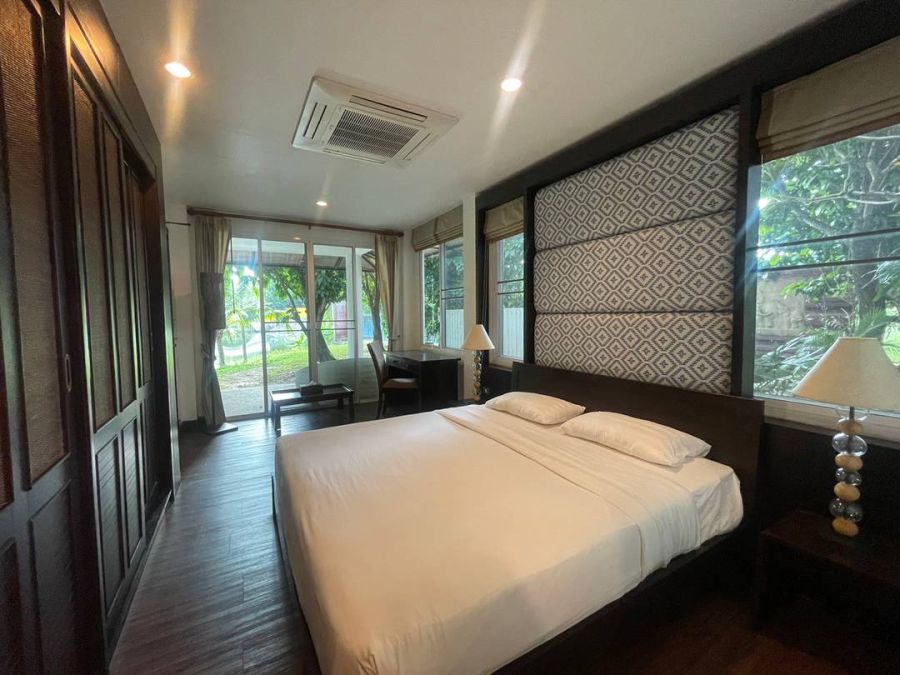 ตกแต่งสไตล์เรียบหรู ด้านหลังห้อง วิวทะเลสาบ ร่มรื่น ด้วยต้นไม้ใหญ่ เย็นสบายตลอดทั้งวัน