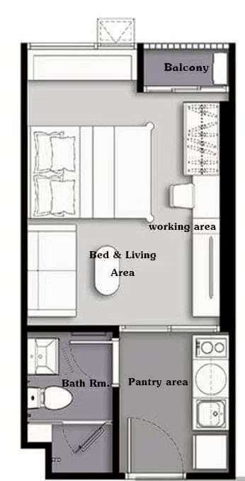 -พื้นที่ใช้สอย 22.77 ตร.ม. เพดานสูง 3 เมตร