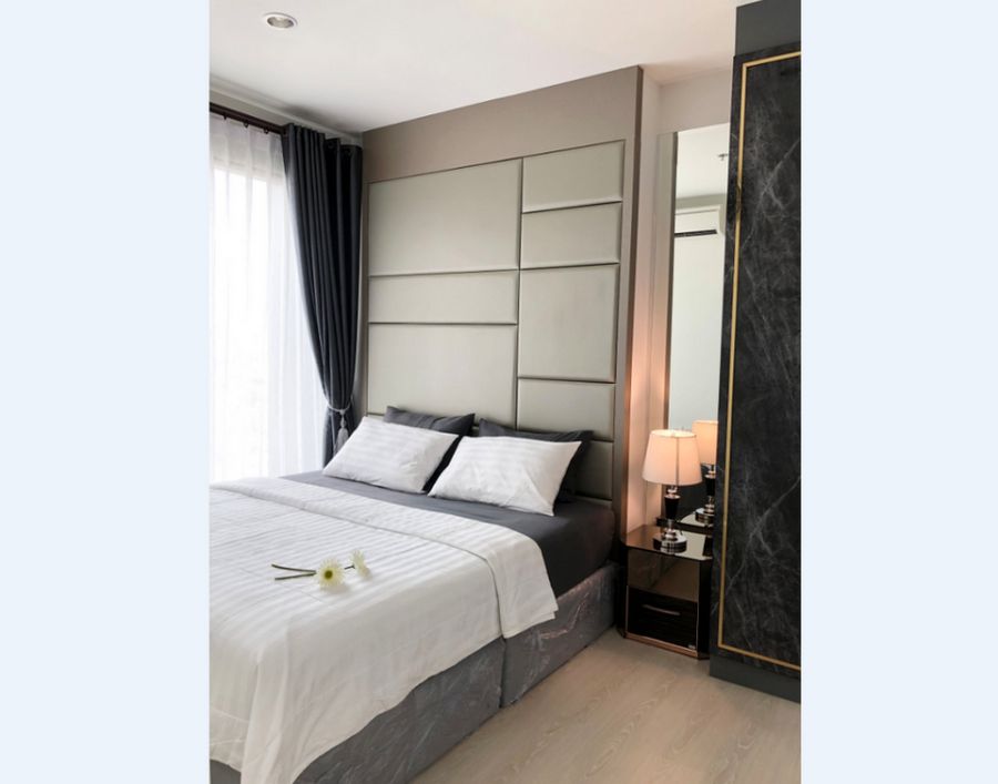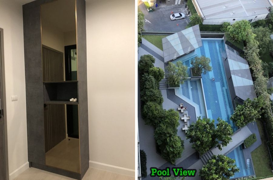 - ห้องขนาด 36 ตารางเมตร 1 ห้องนอน ส่วนครัวแยก วิวสระว่ายน้ำ ตกแต่งตามรูป