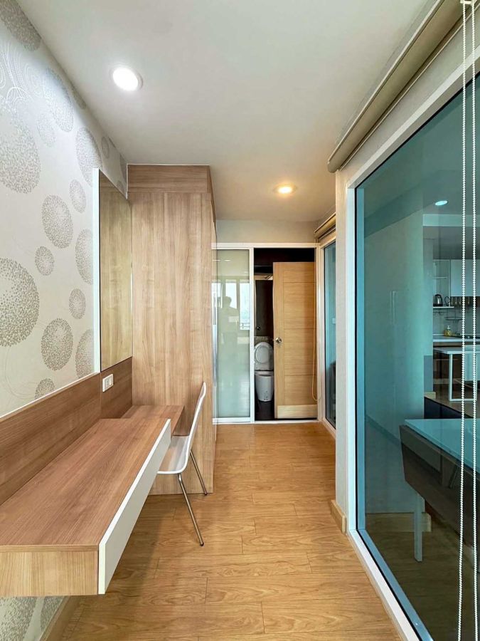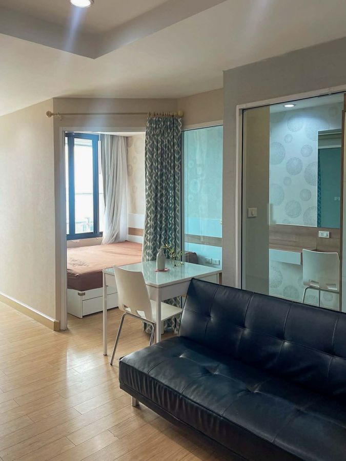 1 ห้องนอน 1 ห้องน้ำ 1 ห้องนั่งเล่น 1 ห้องครัว และระเบียงกว้าง