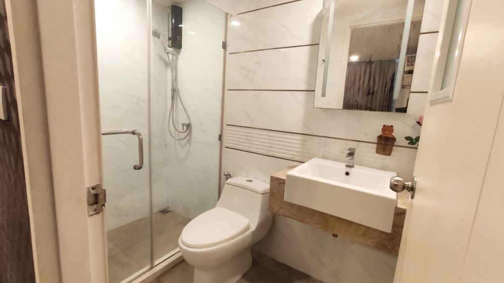 - ห้องน้ำ 1 ห้อง พร้อมเครื่องทำน้ำอุ่น และฉากอาบน้ำ