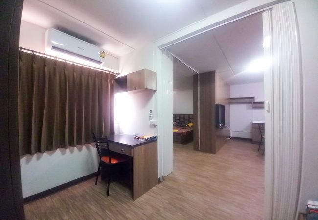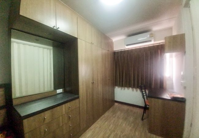 – ห้องนอนเล็ก ชุดที่นอนเตียง 3.5 ฟุต ตู้เสื้อผ้า โต๊ะเครื่องแป้ง ชุดโต๊ะทำงาน เคาน์เตอร์ซิงค์ครัว แอร์ 2 ตัว