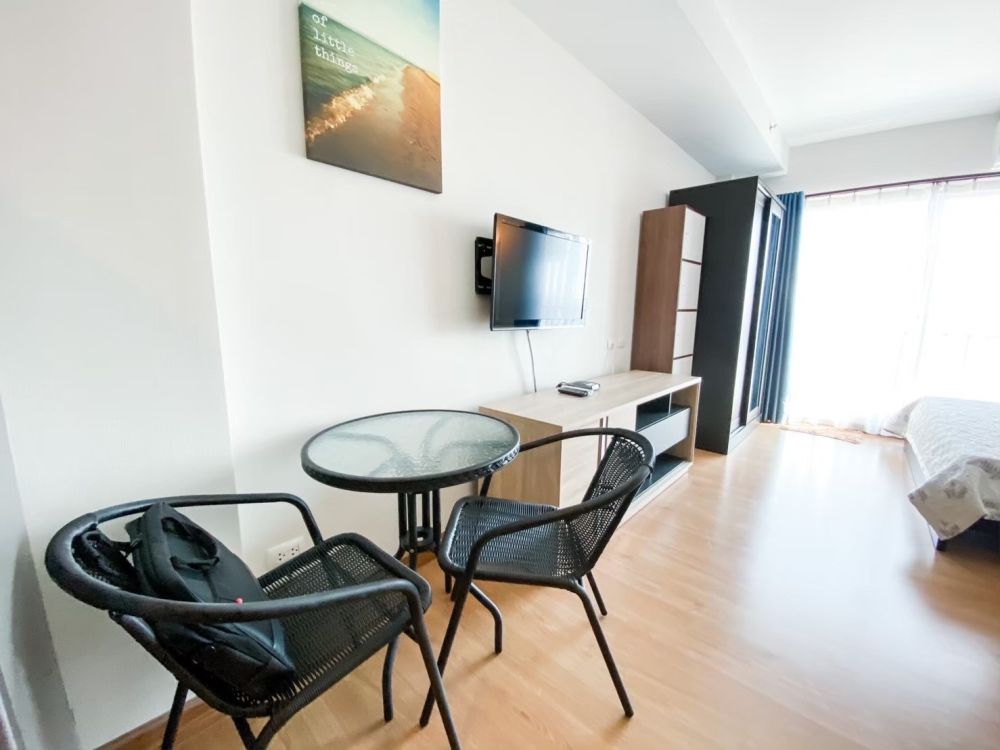 ห้องนั่งเล่น พร้อมเฟอร์นิเจอร์ โซฟาเบด ตู้เย็น TV. ไมโครเวฟ เครื่องทำน้ำอุ่น แอร์ ชุดครัว ฯลฯ สภาพใหม่พร้อมอยู่