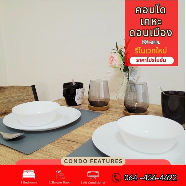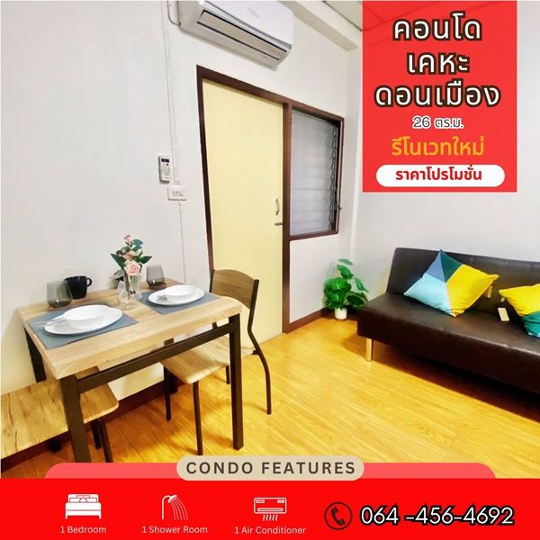 R022-2 ขายด่วน คอนโด เคหะดอนเมือง ตึกหน้า ใกล้เซเว่นตกแต่งใหม่ พร้อมเฟอร์นิเจอร์ครบ พร้อมอยู่!! ซ.ช่างอากาศอุทิศ 15 สีกัน เขตดอนเมือง กรุงเทพมหานคร ขายถูกเพียง 270,000บาท เท่านั้น!!