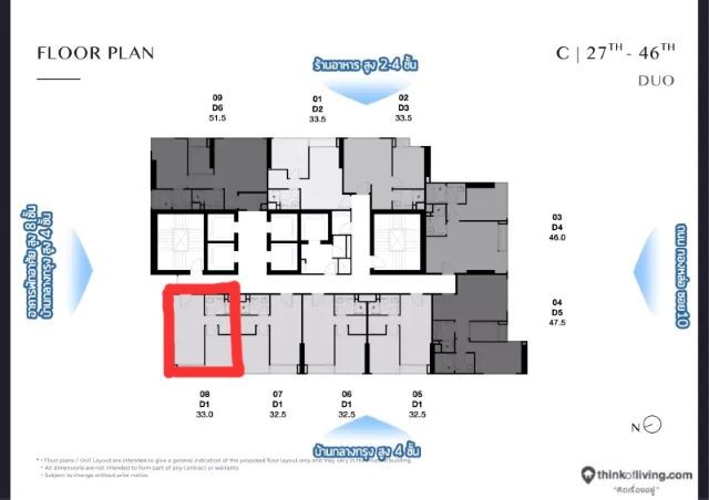 -ตำแหน่งห้อง C4008 Duplex 2beds,1bath