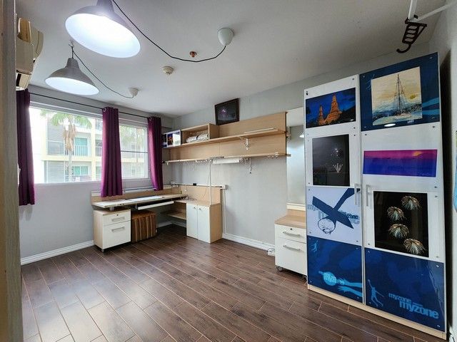- ห้องรับแขก พร้อมโซฟา โต๊ะทำงาน พร้อมตู้เก็บของครบ โต๊ะทานข้าว 4 ที่นั่ง