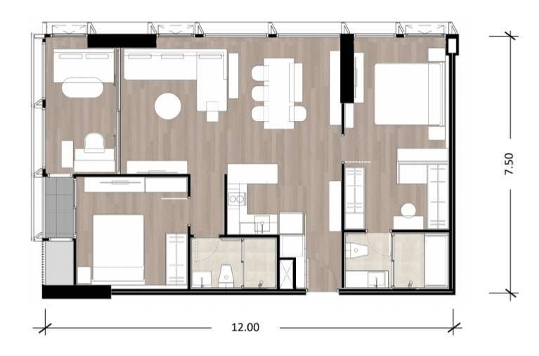 -Type is 2 bedrooms plus, 2 bathrooms.