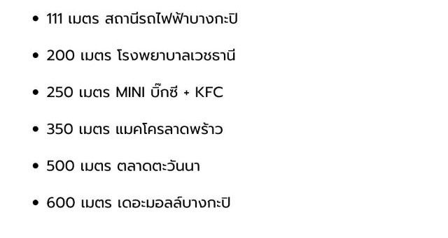 คอนโดใกล้รถไฟฟ้าสถานีบางกะปิสายสีเหลืองเพียง 111 เมตร (ประมาณ 3 นาที) เดินทางเข้าเมืองสะดวก ไลฟ์สไตล์ครบครัน ใกล้ห้างเดอะมอลล์บางกะปิ ตะวันนา แมคโคร โลตัส ใกล้โรงพยาบาล