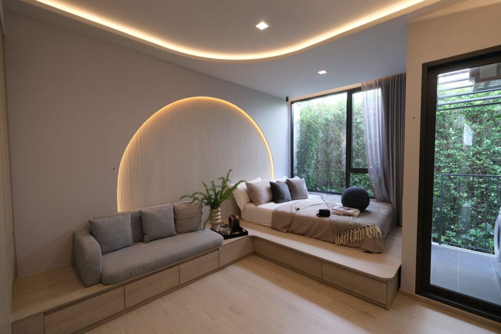 - ตำแหน่งเตียงนอนเป็นกระจกใสมองเห็นวิวภายนอกได้