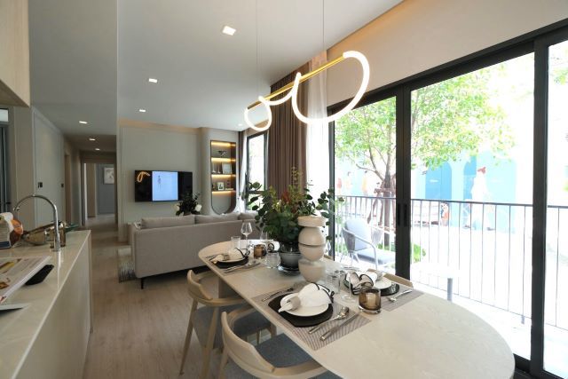 (แตกต่างจาก 2 ห้องนอนของโครงการทุกห้องที่ห้องนอนจะอยู่ติดกัน) ห้องมุมได้ 3 ทิศ เหนือใต้ ตะวันออก เห็นวิวรถไฟฟ้าและสาทร city วิว