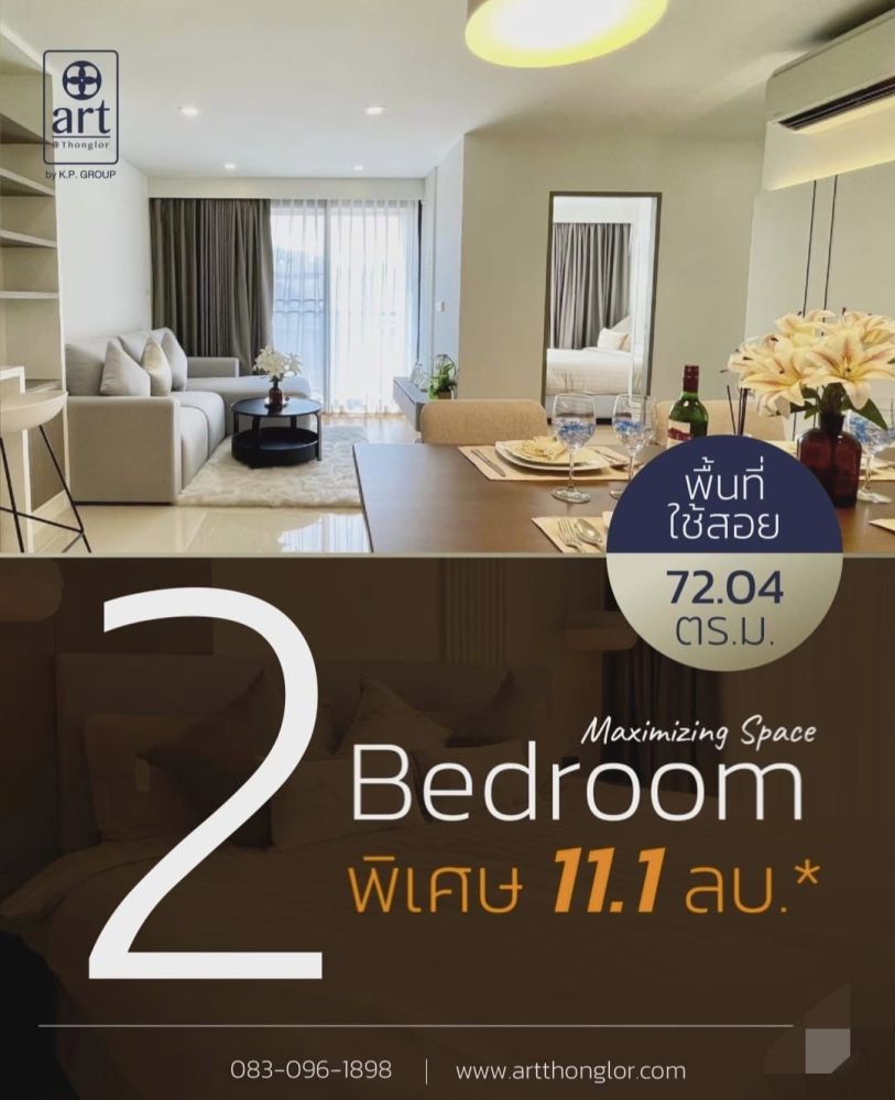 #TheArtThonglor25 พร้อมให้คุณเข้าเป็นเจ้าของคอนโดในราคาจับต้องได้ มากับการออกแบบเพื่อความสบาย Feel Like Home 2 ห้องนอน 72.04 ตร.ม ตกแต่งไหม่ทั้งห้อง ให้ความทันสมัย และ สะดวกสบาย เพียง 11.1 ลบ.* เท่านั้น