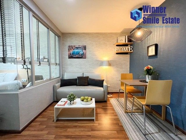 - 1 ห้องนอน 1 ห้องน้ำ 1 ห้องนั่งเล่น 1 ห้องครัว แบ่งเป็นสัดส่วน