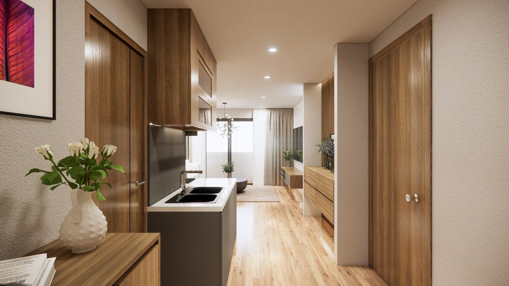 2 ห้องนอน 1 ห้องครัว 1 ห้องน้ำ และระเบียงใหญ่