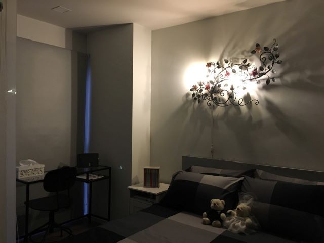 -เฟอร์นิเจอร์และเครื่องใช้ไฟฟ้าครบพร้อมเครื่องซักผ้า ที่หัวเตียงตกแต่งด้วยโคมไฟเถาวัลย์