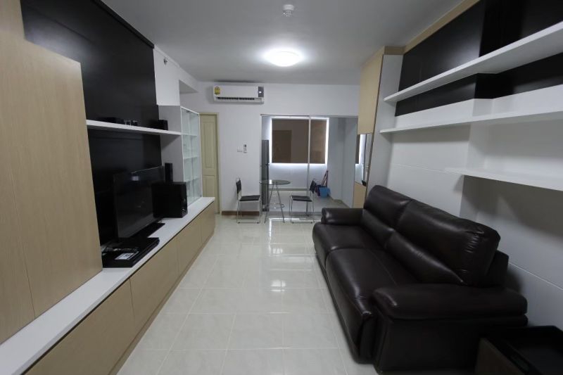 - 1 ห้องนอนใหญ่มีระเบียง 1 ห้องน้ำ 1 ห้องครัว และ 1 ห้องรับแขก