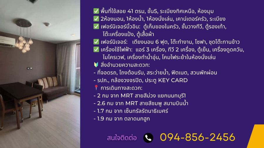 #ขายต่ำกว่าราคาประเมิน 1.69 ล้าน 2นอน 1น้ำ 41ตรม, คอนโด ไนซ์ สวีทส์ 2 สนามบินน้ำ, ใกล้MRTสถานีแยกนนทบุรี 1