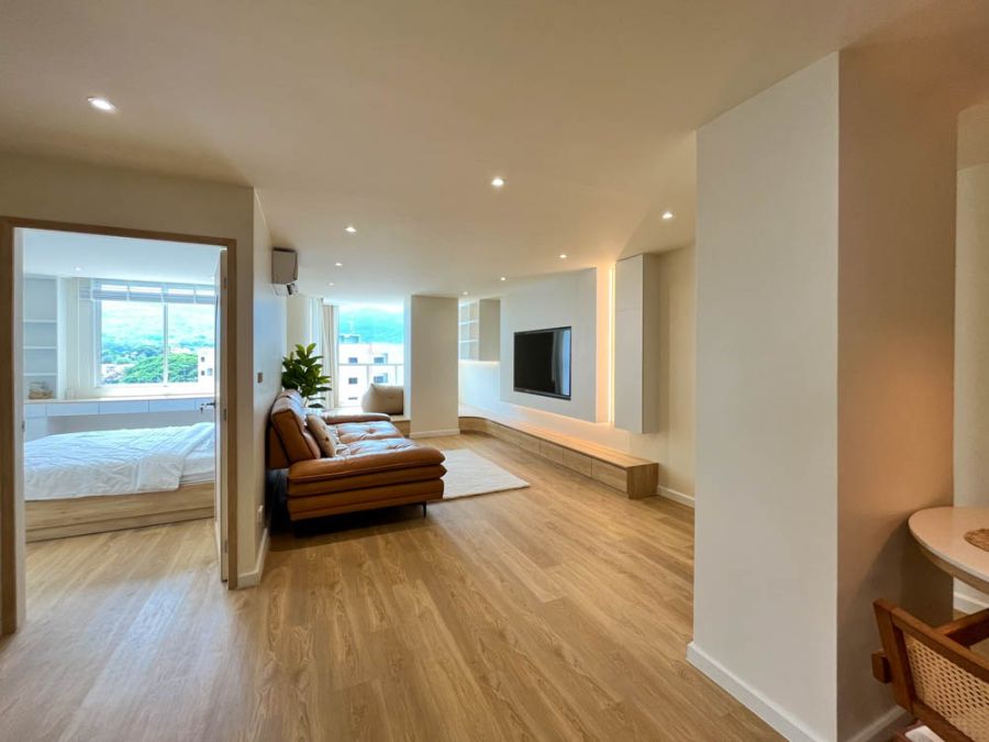 Experience elevated living in this exceptional corner unit condo at Taweepol Tower, located on the 7th floor with a spacious area of 92 sq.m. This unit features 2 bedrooms, 2 bathrooms, and a large open-plan living room. Enjoy panoramic views of Doi Suthep Mountain from every corner. The master bedroom comes with a private balcony and bathtub, making it the perfect place to unwind and recharge.