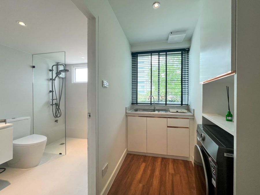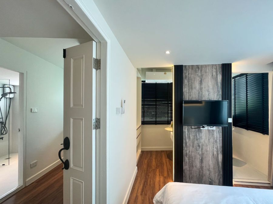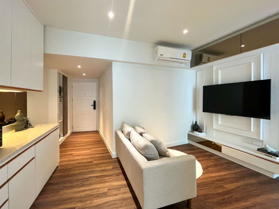 This 2-bedroom, 1-living room, 1-bathroom condo spans 48 sq.m. and is beautifully decorated with full furniture and appliances. Features include a high-security digital door lock, washer-dryer combo, luxurious marble-top island table, and a premium view of Kantary Hotel—offering both elegance and privacy 🛋️🏡