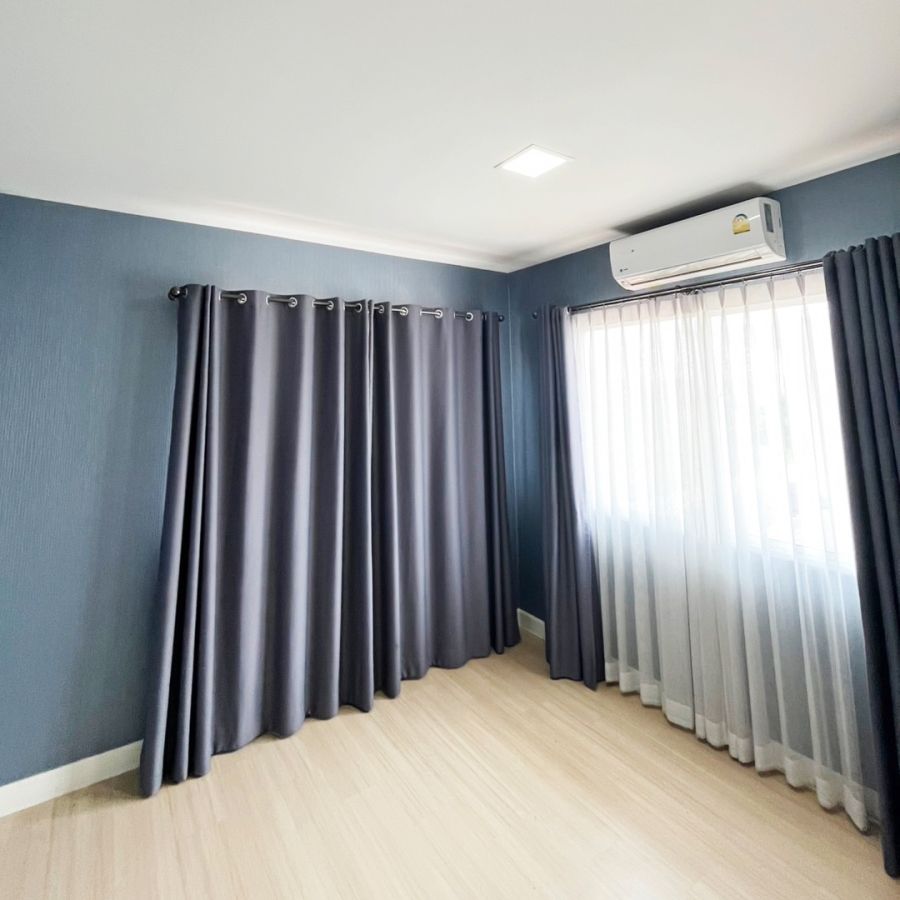 - ติดผ้าม่านทั้งหลัง และวอลเปเปอร์ทั้งหลัง