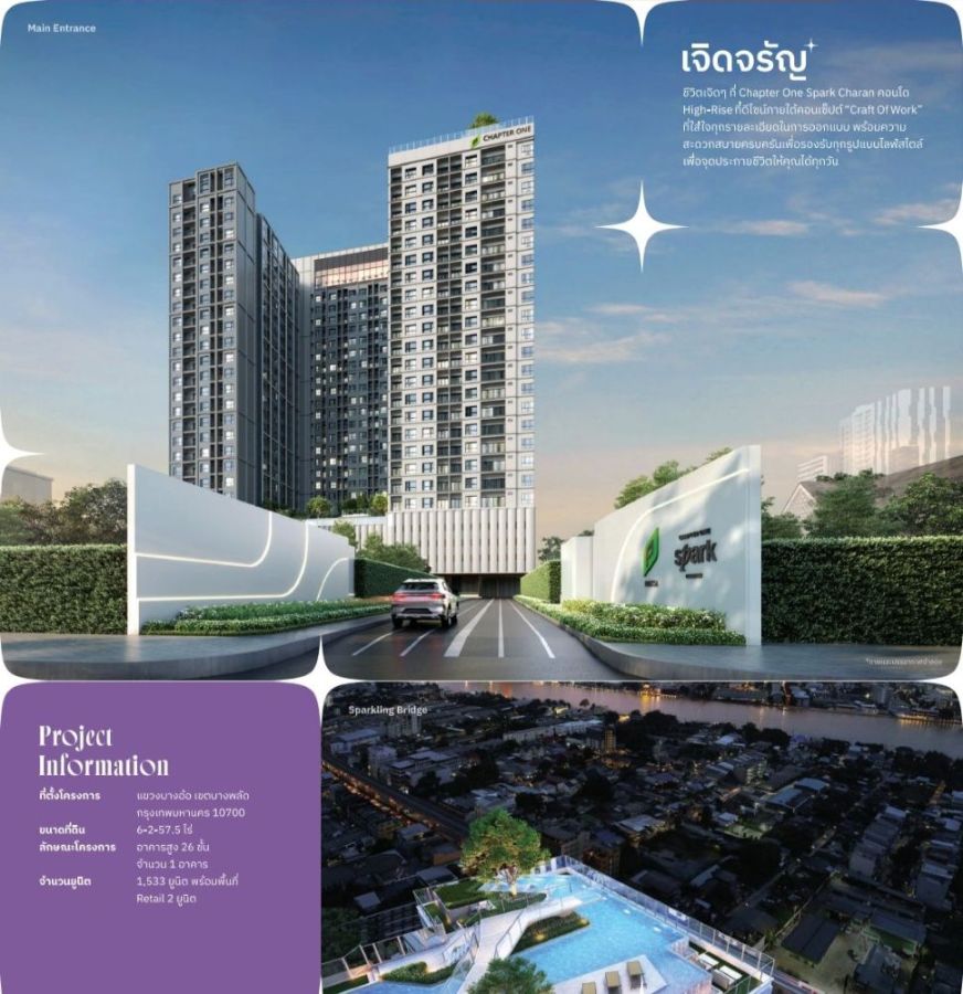 ขายดาวน์คอนโด Chapter One Spark Charan ทำเลดี ใกล้รถไฟฟ้า MRTบางพลัด
