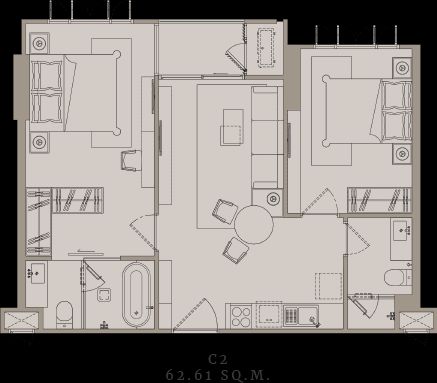 - ห้องขนาด 62.50 ตร.ม. ชั้น 2 ตึก A