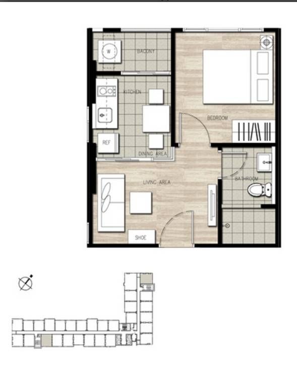 - 1 ห้องนอน 1 ห้องน้ำ 1 ห้องครัว 1 ห้องนั่งเล่น