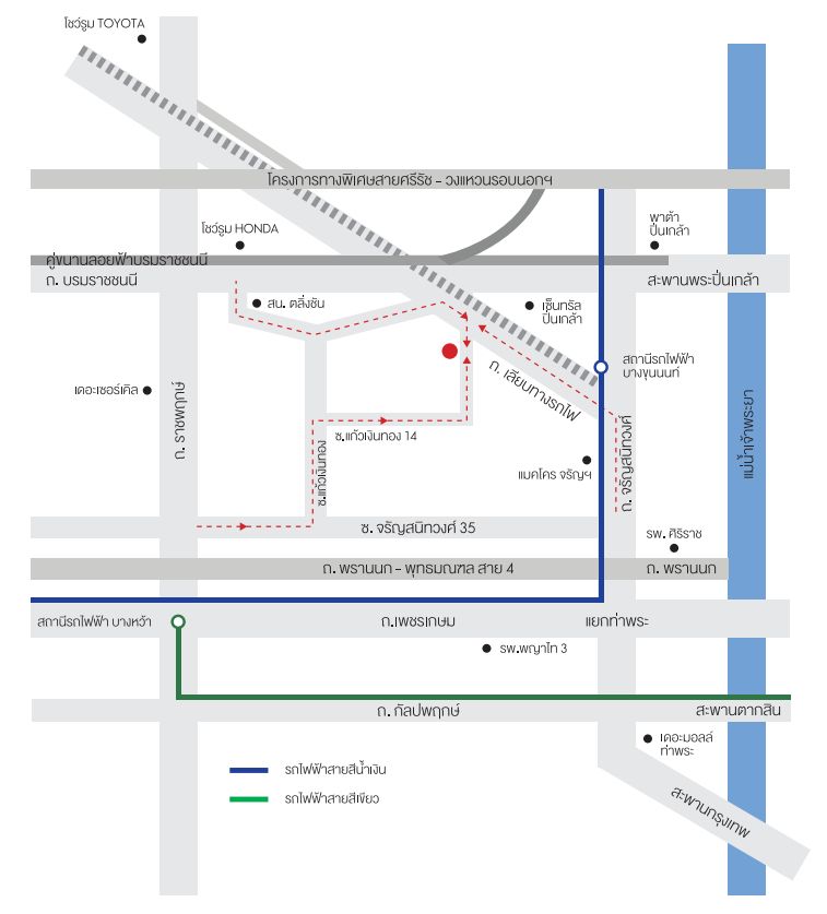 - ใกลัจุดขึ้นลงทางด่วนศรีรัช และเข้าออกได้หลายทาง ถนนจรัลฯ ราชพฤกษ์ บรมราชชนนี และพรานนกตัดใหม่