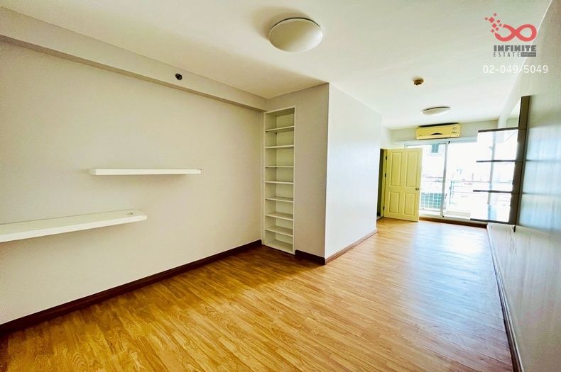 ตกแต่ง : แอร์ 2 เครื่อง เครื่องทำน้ำอุ่น พื้นห้องโถงปูกระเบื้อง ห้องนอนปูลามิเนต บิ้วท์อินชั้นวางของและตู้