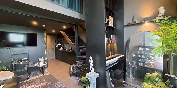 ขายคอนโด มือสอง ห้อง Duplex (ตกแต่งเกือบล้าน) (Blak mens style decoration) ขายขาดทุน ฟรีโอน ห้องมุม คอนโด ละติจูด ใกล้ม.เอแบค บางนา