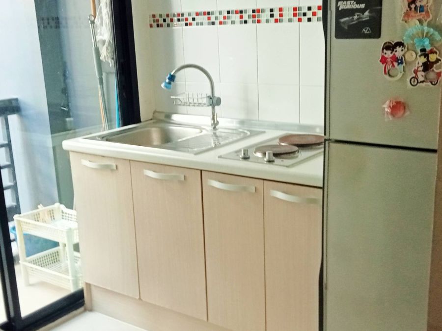 - 1 ห้องครัว + ซิงค์ล้างจาน+ เตาไฟฟ้า 2 หัว พร้อมตู้บิวท์อินเก็บของ