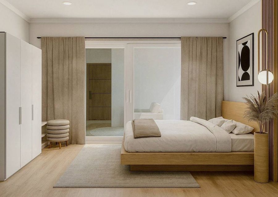 กั้นห้องนอน แบ่งสัดส่วน มีระเบียง พร้อมหน้าต่างกระจก