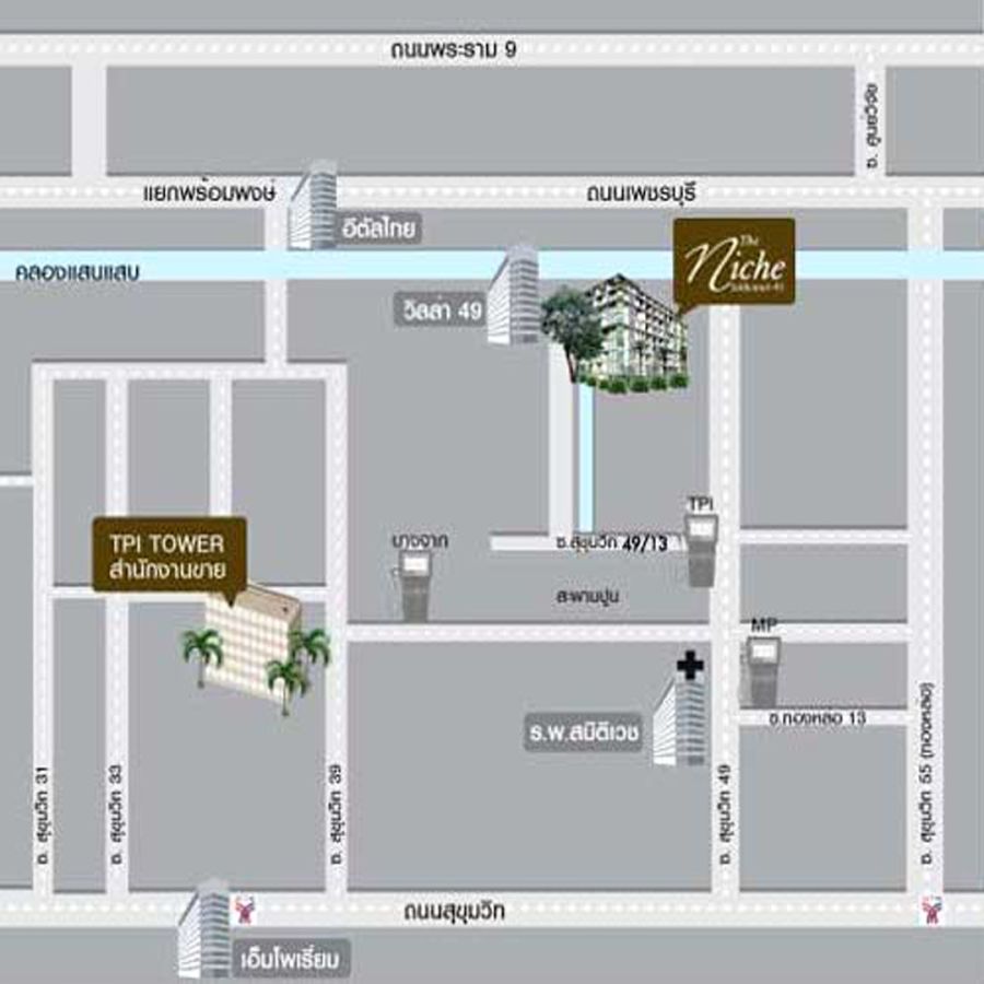 การเดินทาง เริ่มจากแยกอโศกมนตรี ถนนสุขุมวิท ⇒ BTS อโศก ⇒ BTS พร้อมพงษ์ ⇒ ซอยสุขุมวิท 49 ⇒ ซอยสุขุมวิท 49/13 ถึงโครงการ The Niche สุขุมวิท 49