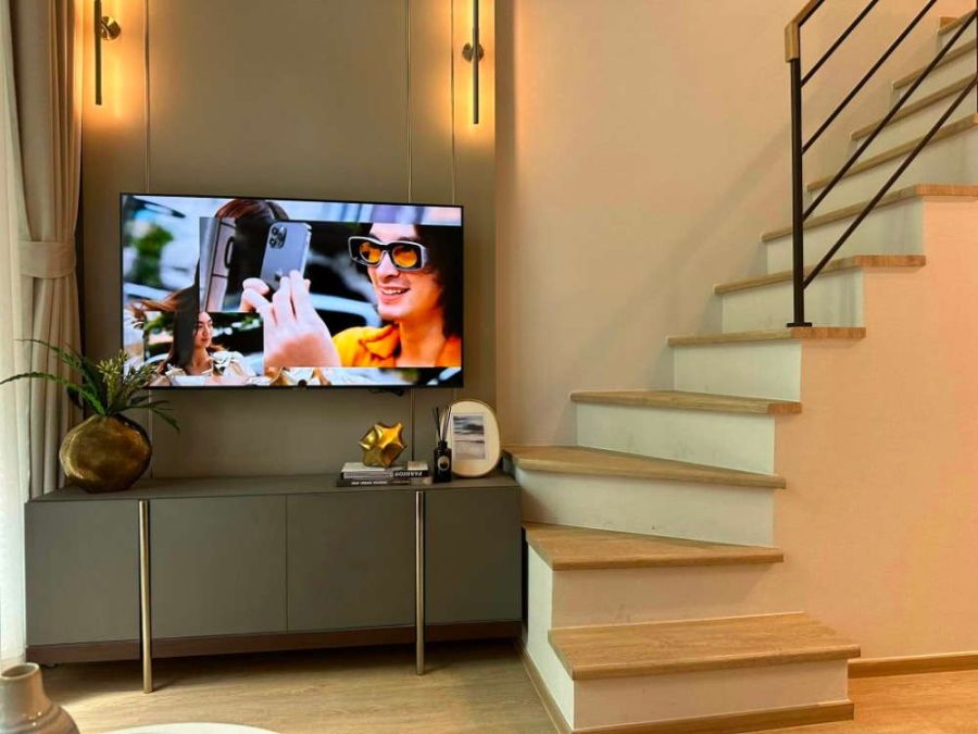 - พื้นที่ living ชั้นล่างเป็นแบบเพดานสูงกว่า 4.3 เมตร ทำให้มีความรู้สึกโล่งสบาย เหมือนอยู่บ้าน