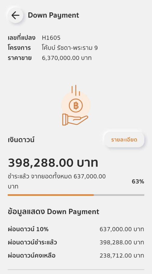 - ผ่อนดาวน์ที่ชำระแล้ว 398,288บาท (ถึงสิ้นสิงหาคม 2568)