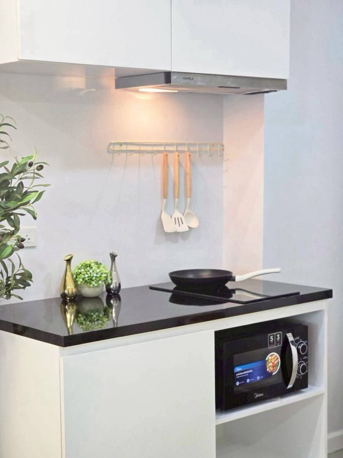 ✔️ บิ้วอินชุดครัวพร้อมเตาไฟฟ้า และฮูดดูดควัน