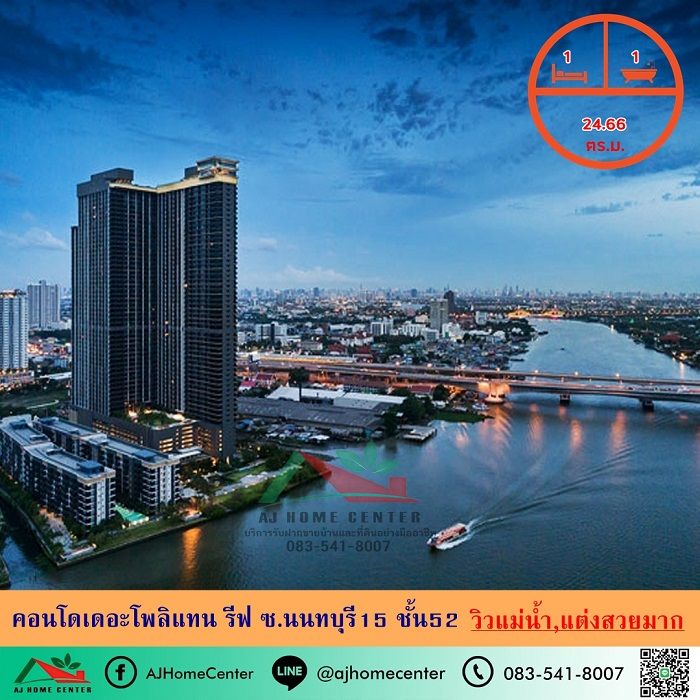 ขายคอนโดเดอะโพลิแทน รีฟ ซ.นนทบุรี15 ขนาด24.66ตรม. ชั้น52 วิวแม่น้ำ แต่งสวยมาก