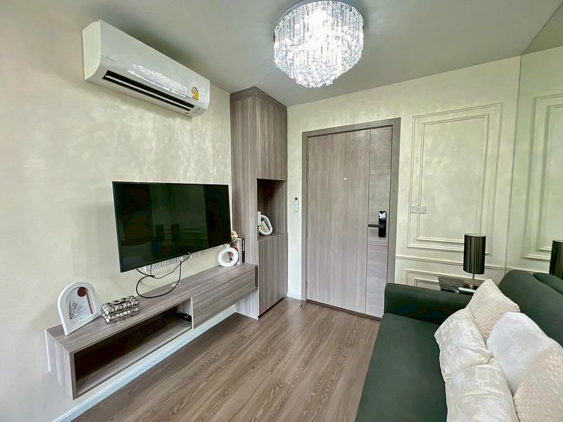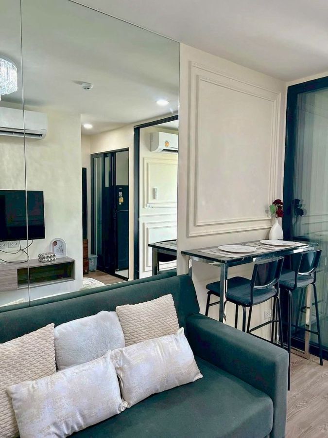 คอนโดตกแต่งพร้อมอยู่ เฟอร์นิเจอร์ครบ เครื่องใช้ไฟฟ้าครบ Digital Door Lock ห้องแยกครัว/นั่งเล่น เดินเพียง 70 เมตรจาก MRT รามอินทรา กม.9 เหมาะทั้งอยู่เอง/ปล่อยเช่าได้ทันที