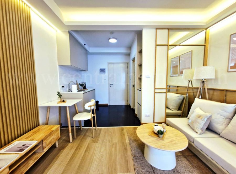 - 1 ห้องนอน, 1 ห้องน้ำ, 1 ห้องนั่งเล่น พร้อมเคาท์เตอร์ครัว แถมแอร์ 1 เครื่อง